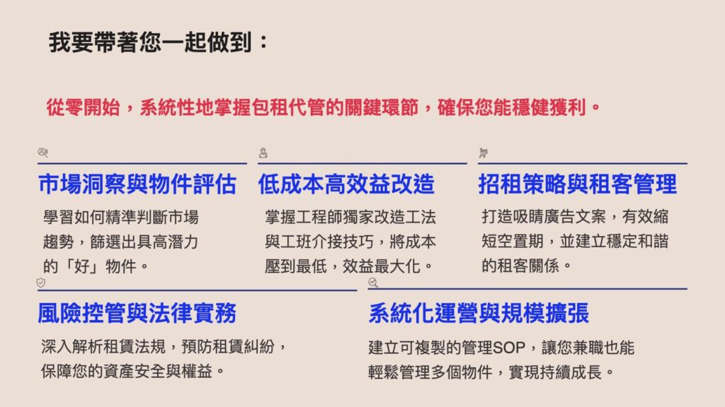 - 財稅與規模化 — 建立可擴張的房產事業體系
